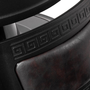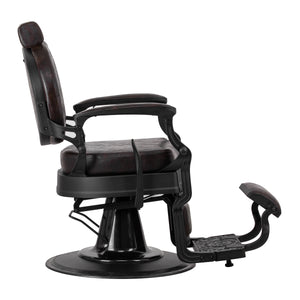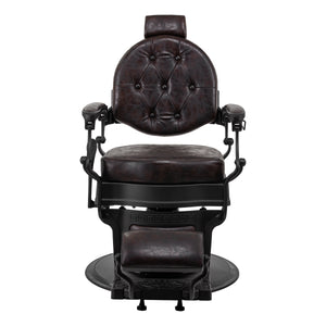 The solid construction of the base ensures stability and high comfort of use. The seat filling is made of durable, deformation-resistant foam and the upholstery is made of pleasant-to-touch synthetic leather with a semi-matte finish, ensuring the durability of the furniture and its comfortable use for a long time. They also make the equipment resistant to moisture, durable and easy to clean. The covering in shades of brown with quilting and decorative buttons gives it a unique character. The chair with a characteristic design, referring to the vintage style, perfectly fits the atmosphere of barbershops, emphasizing their unique atmosphere.