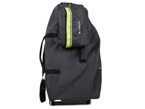 The cover has a spacious pocket, a shoulder strap, a comfortable handle for easy transport, and a special cutout for transporting the chair on wheels.