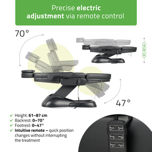 The Leo PRO 4 Electric Beauty Chair was designed to meet the needs of professionals seeking modern and proven solutions. Thanks to precise electric adjustment, the chair significantly enhances comfort and efficiency during treatments.