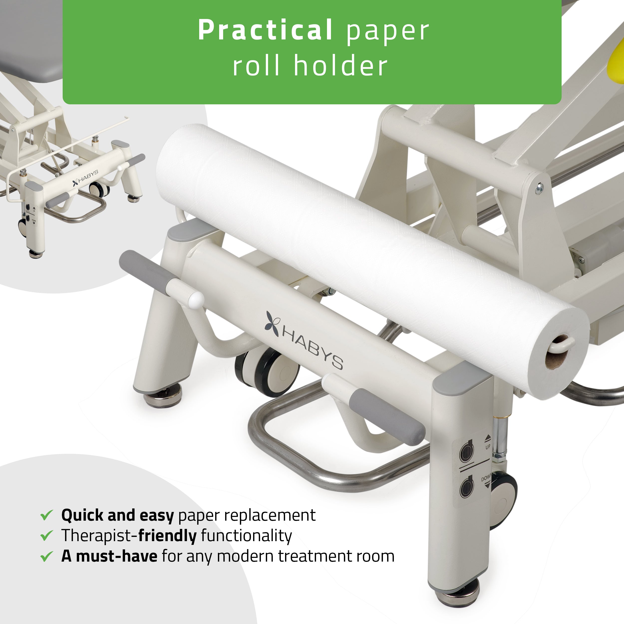 A practical addition that allows quick and easy replacement of hygiene paper during sessions.