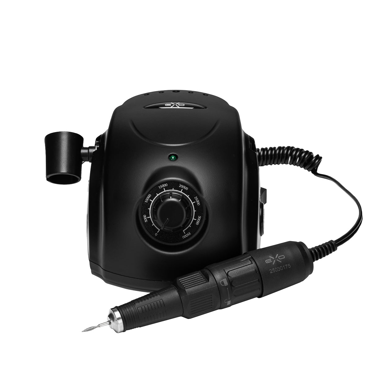 The functional EXO Runner Up nail drill with a brush motor is perfect for both manicures and pedicures. It allows for quick nail preparation and the removal of remnants of previous nail styling. The well-balanced head and thoughtful features make working with the device efficient and comfortable.