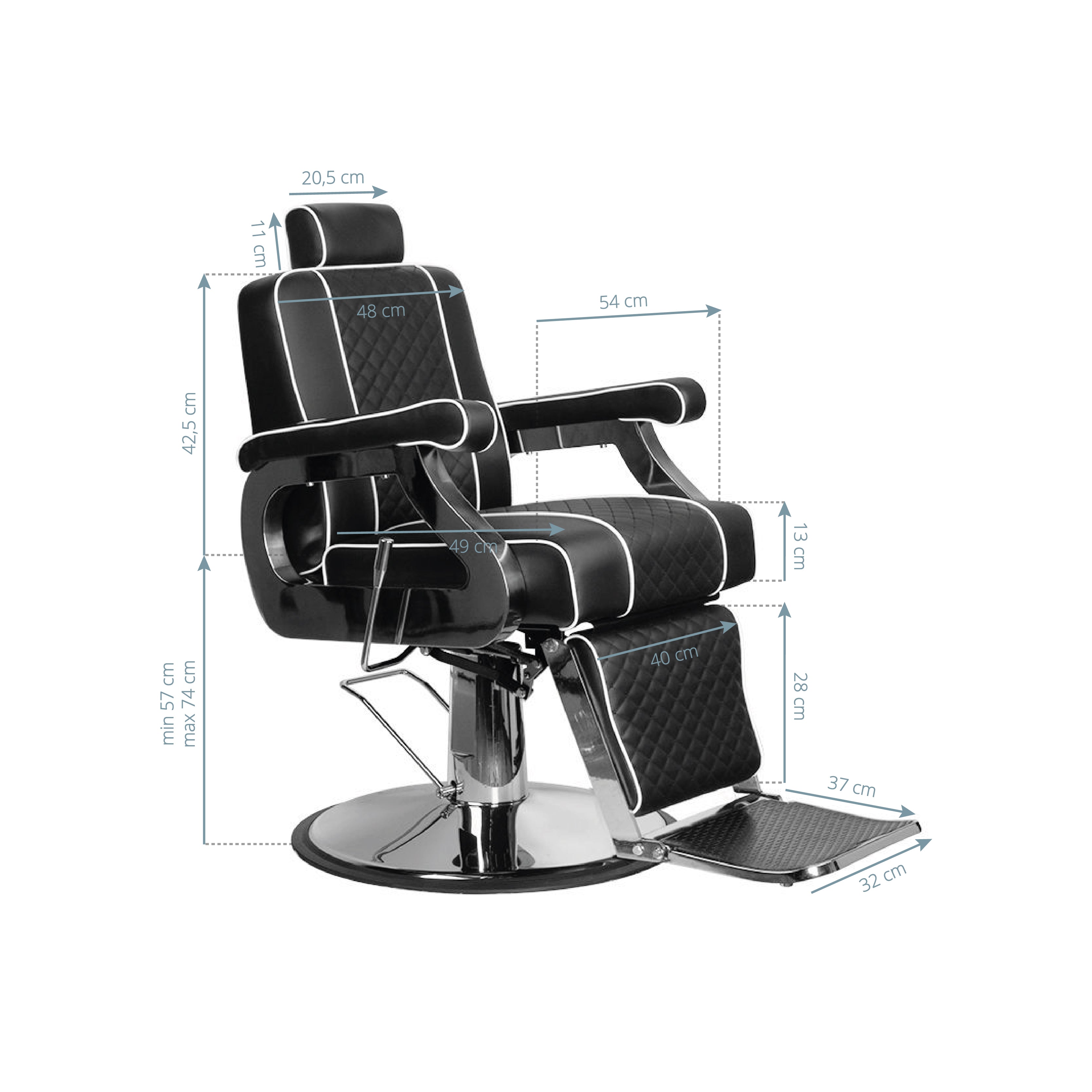 The chair's comfortable seat is covered with high-quality eco-leather, adding a touch of luxury to every experience. The wide chrome base guarantees stability during salon operations, ensuring a seamless and comfortable grooming session for your clients.