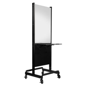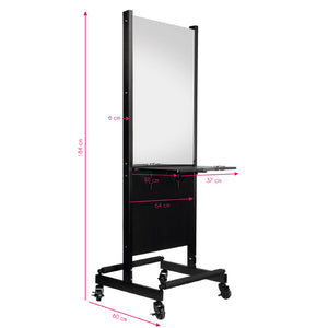 Gabbiano console is a professional piece of furniture with two mirrors. smoothly running wheels allow for quick and trouble-free movement of the console to any place. stable, black powder-coated metal structure