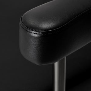 The chair is filled with foam, which is durable and does not deform, ensuring comfortable use for a long time. The upholstery is made of pleasant to the touch imitation leather with a specific structure. Thanks to the use of such material, the equipment is resistant to moisture, durable and easy to clean. The covering in shades of black and decorative elements in black hues give it an expression of timeless elegance. It is distinguished by a tasteful finish, which gives it an exclusive character and makes it look great in many professional salons.