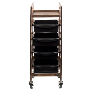 two-sided hairdressing assistant in old gold color, with 4 litter boxes and holders for hairdressing accessories. stable construction will ensure long-term use. table mounted on rubber wheels, thanks to which the tools will always be at hand.