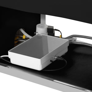 The Head Spa 017 SPA lounger is a combination of functionality and modern design. Equipped with a solid stainless steel frame, it guarantees stability and durability. The ergonomically profiled lounger is covered with soft synthetic leather in shades of black, ensuring maximum comfort during treatments. In addition, the space with sliding door under the lounger allows for convenient storage of cosmetics and accessories, making it an excellent choice for professional beauty & wellness salons.