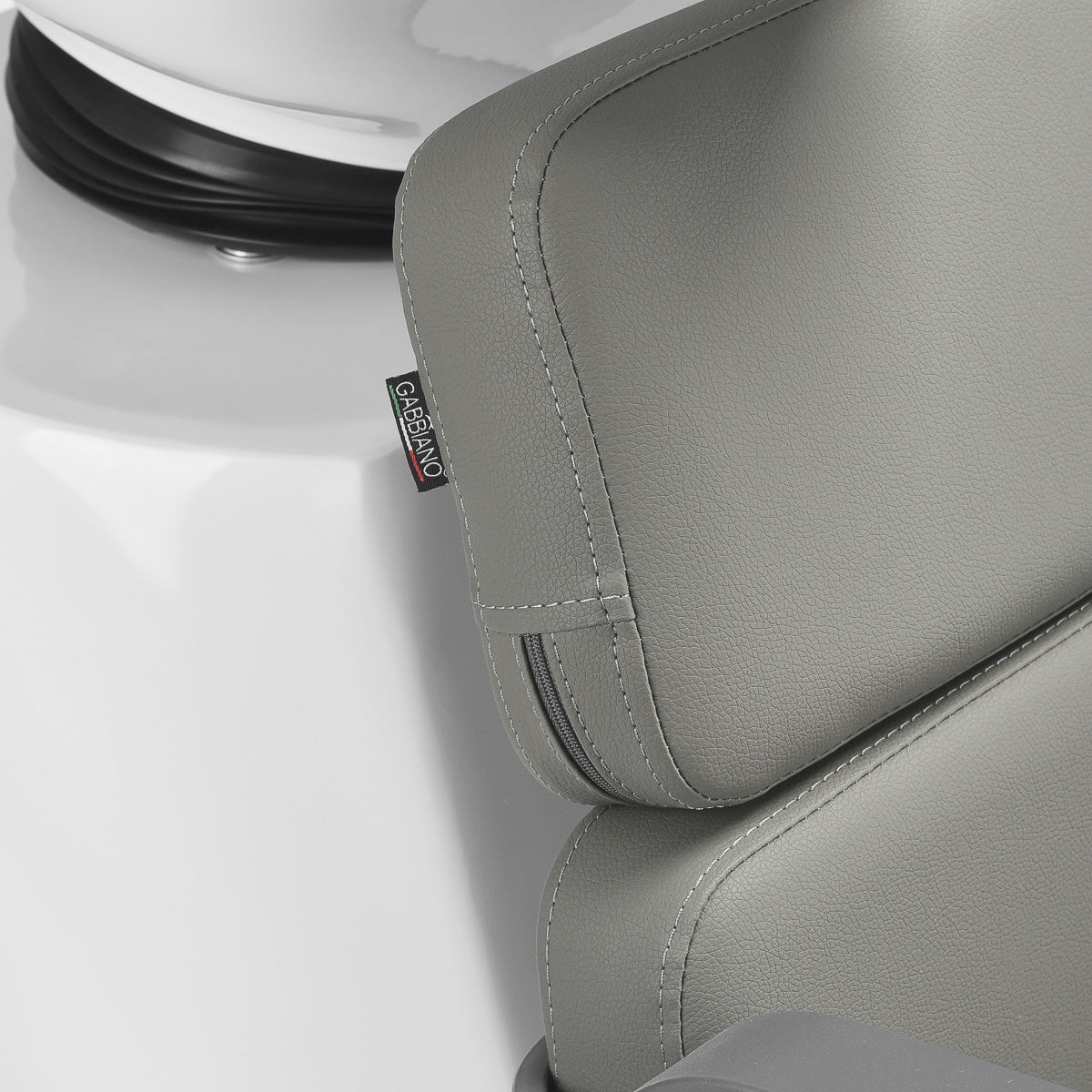 The elegant Gabbiano Porto hairdressing hair wash unit was designed to provide practical equipment for a professional hairdressing salon. It facilitates basic hair treatments, such as washing, coloring and regeneration. The integrated design ensures comfort of use for both hairdressers and clients, and the visually interesting chair gives the interior a unique style.