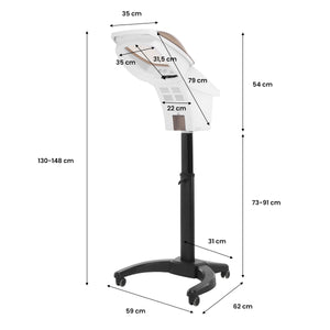 The white plastic housing makes the device durable and easy to keep clean. The opening dome significantly improves the cleaning of the product. The stand with simple, manual adjustment in the range of 18 cm is equipped with a base with practical wheels, which allows you to easily move the device at any time.