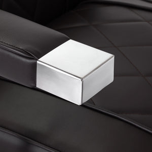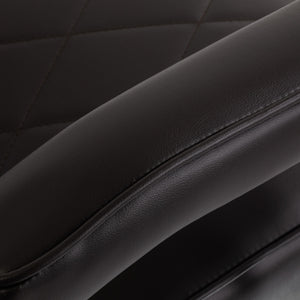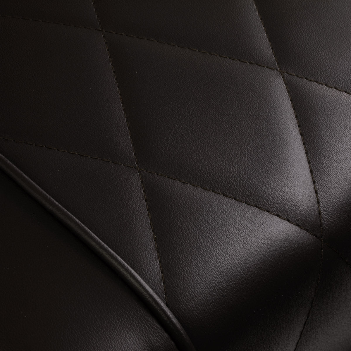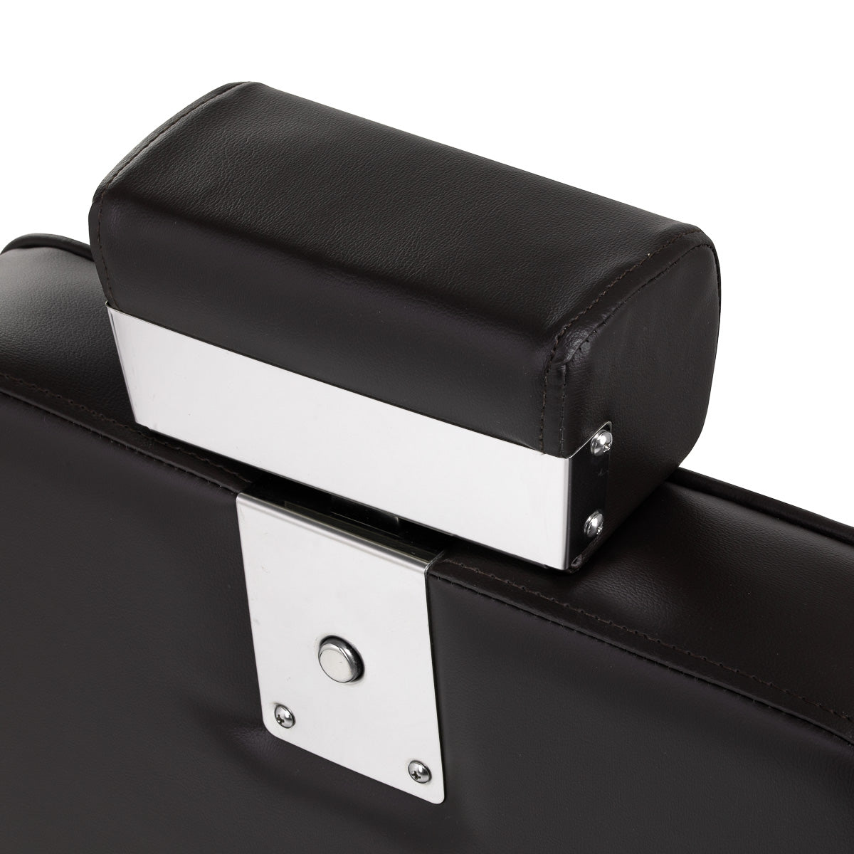 The chair's solid round base construction ensures stability and excellent user comfort. The seat filling, made of deformation-resistant foam, and the upholstery crafted from soft-touch synthetic leather with a matte finish ensure long-lasting durability and comfort during prolonged use. Stylish stitching on the upholstery adds character, evoking automotive design inspirations that enhance its elegant appearance. This feature also makes the chair moisture-resistant, durable, and easy to clean. The upholstery in brown tones gives the chair a unique character, and its minimalist style allows it to blend seamlessly with the decor of any barbershop.