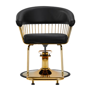 The comfortable chair is filled with durable and deformation-resistant foam, which ensures long-term use, high comfort and convenience even during long-lasting treatments. The upholstery is made of pleasant-to-the-touch synthetic leather. Using such material makes the equipment resistant to moisture, durable and easy to clean. Covering in shades of black and decorative elements in gold colors give it an expression of timeless elegance. All metal surfaces are polished. The Lille hairdressing chair is distinguished by a tasteful finish, which gives it an exclusive character and makes it look great in many professional salons.