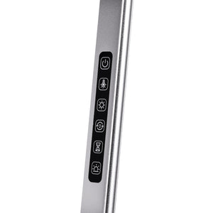 The colour and intensity of the light can be precisely adjusted using the touch panel placed on the head or the included wireless remote control. The adjustment offers 5 levels of both light intensity and colour temperature (cold, neutral, warm). The user can also choose the active panel – upper, lower or both at the same time. The lamp also has a time mode setting function: the cycle includes 25 minutes of lighting, followed by a 5-minute break. Holding the dedicated button for a longer activates automatic lamp shutdown after 60 seconds. The touch panel allows you to set the Sunlight mode (temperature 4000 K, intensity 100%), and the remote control allows you to select additional modes: Focus (temperature 5500 K, intensity 80%) and Relax (temperature 3000 K, intensity 40%).