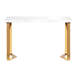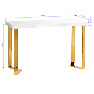 The modern form of the desk, combining a white top with gold, geometric legs, adds lightness and elegance to the interior. Thanks to its compact, yet stylish form, the desk will work perfectly in both small salons and larger, modern interiors.