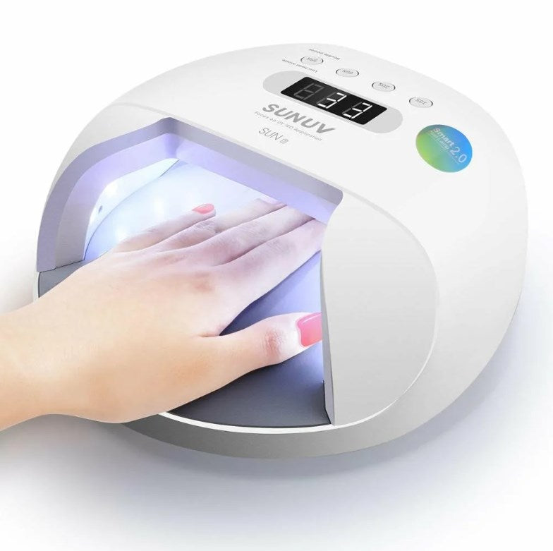 Professional UV LED nail polish drying lamp for drying gel polishes. This is a new generation smart UV LED nail polish drying lamp with smart features: twice the setting, time memory, smart sensor, digital display, overheat protection. The light emitted by this nail lamp does not harm the eyes or damage the skin. SUNUV Sun 7 nail lamp is ideal for use both at home and in the beauty salon.