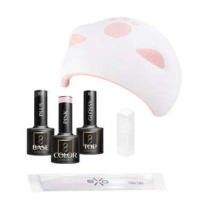 The set contains the essential products for nail styling. It includes hybrid polishes, liquids and preparations as well as accessories. In addition, it is completed with a professional lamp for curing hybrid nails.
