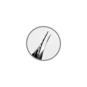 S podiatry tweezers are made of the highest quality stainless steel. The special design of the serrated blade and pointed tip allows precise grasping of the finest elements. The size of the tweezers allows you to use a lot of force in the process of cleaning areas in the nail shafts and areas under the nail plate. The exceptional strength of the tweezers facilitates the use of the tool when applying, for example, fragments of nail plate reconstruction. The tweezers can be sterilized in an autoclave.