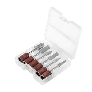 The set includes: nail drill base, h0ead, plastic head holder, cone bit, head cable, power supply, instructions.