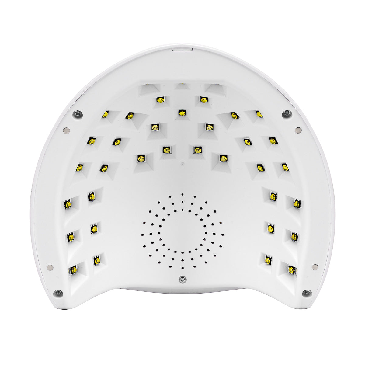 36 precisely positioned LEDs ensure perfect curing of gels and hybrid polishes, eliminating the risk of the so-called dead zone. The closed design, called a booth, allows for more precise and faster curing of nail designs. Thanks to Dual LED technology, the diodes emit light at two wavelengths, reducing eye fatigue and extending the device’s range. The mirrored bottom reflects light evenly, speeding up and optimizing the curing process over the entire nail surface. These features make it easier to properly cure even the most demanding products, allowing access to harder-to-reach areas of the nail plate.