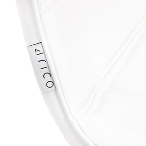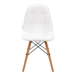 Sedák je vyplněn houbou a čalouněn na dotek příjemnou syntetickou kůží v odstínech bílé barvy, která se velmi snadno udržuje v čistotě. Drobné skvrny a nečistoty lze snadno odstranit lehce navlhčeným hadříkem. Esteticky příjemné prošívání a pečlivé prošití dodávají nábytku na eleganci, zatímco kovový rám v odstínech černé barvy mu dodává stabilitu. Dřevěné nohy s matnou povrchovou úpravou jsou opatřeny plastovou ochranou, která je dále chrání před náhodným poškozením. Židle ve skandinávském stylu je pohodlný kus nábytku, který se stane ozdobou recepce každého kosmetického salonu.