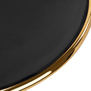 Povrchová úprava dělá z tohoto kusu nábytku opravdovou ozdobu. Na dotek příjemné sametové čalounění v odstínech černé barvy mu dodává jedinečný charakter. Podstavec v odstínech zlaté barvy dodává eleganci a dokonale ladí se sametem. Funkční kolečka zajišťují mobilitu, takže křeslo lze snadno přemisťovat a pohybovat se po obývacím pokoji i při práci. Pečlivé zpracování, pohodlí při používání a esteticky propletená látka na tvarovaném opěradle znamenají, že židle splní požadavky i těch nejnáročnějších uživatelů.