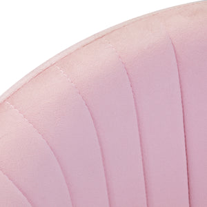 Díky pečlivépovrchové úpravě nábytek upoutá pozornost. Na dotek příjemné sametové čalounění v růžových odstínech mu dodává jedinečný charakter. Podstavec v odstínech zlaté barvy dodává eleganci a dokonale ladí se sametem a funkční kolečka zajišťují mobilitu, takže křeslo lze snadno přemisťovat a pohybovat se po obývacím pokoji při práci. Díky estetickému zpracování, pohodlnému používání, dekorativnímu prošívání a ergonomicky tvarovanému opěradlu židle splňuje požadavky i těch nejnáročnějších uživatelů.