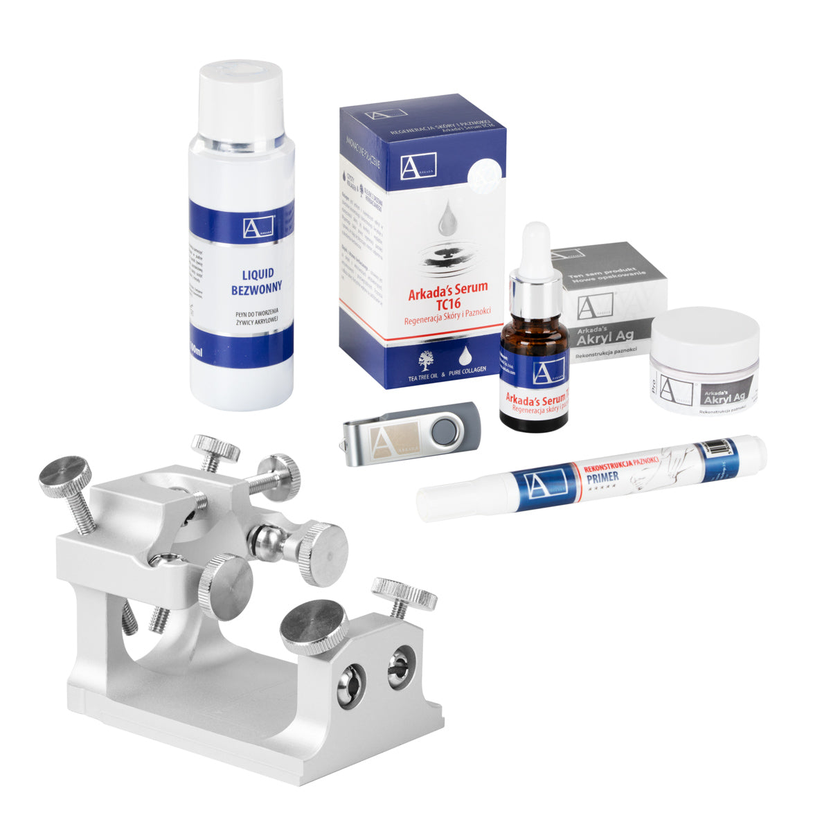 it is suggested to buy a wedge for the tool, which gives a large the comfort of work for specialists, and the patient the convenience of placing the foot at the right angle. An inseparable element of maintaining the effect obtained with the arcade method is the recommendation to use a collagen serum to revitalize the nail bed. it is worth stocking up on the preparation for resale for the patient.
