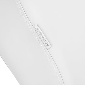 Křeslo je vyplněno pěnou odpovídající tvrdosti a potaženo na dotek příjemnou imitací kůže v bílých odstínech. Díky použití materiálu, který se snadno udržuje v čistotě a je odolný vůči vybraným dezinfekčním prostředkům, je zařízení pohodlné při používání, odolné vůči vlhkosti a nekomplikované na čištění. Robustní základna z odolného bílého materiálu zajišťuje stabilitu při ošetření. Vhodně tvarované lemy dodávají křeslu stylový vzhled a zajišťují ergonomii sedadla.