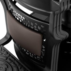 Pevná konstrukce základny zajišťuje stabilitu a vysoký komfort používání. Výplň sedáku z odolné pěny odolné proti deformaci a čalounění z na dotek příjemné syntetické kůže s matnou povrchovou úpravou zajišťují odolnost nábytku a jeho pohodlné používání po dlouhou dobu. Díky použitým materiálům je zařízení také odolné vůči vlhkosti, trvanlivé a snadno se čistí. Potah v odstínech hnědé barvy stejně jako zdobená podnožka, mu dodávají jedinečný charakter. Křeslo s výrazným designem, připomínajícím vintage styl, dokonale zapadá do prostředí holičství a podtrhuje jeho jedinečnou atmosféru.