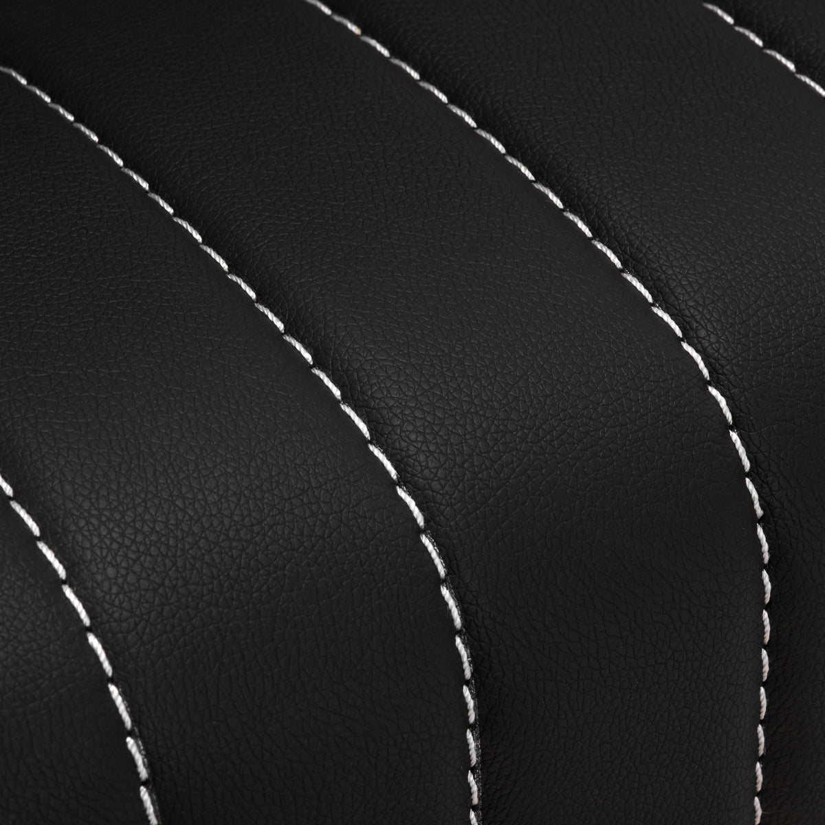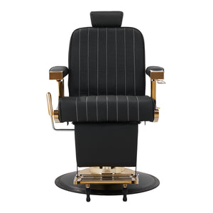 Pevná konstrukce se širokou základnou zajišťuje stabilitu, a tím i vysoký komfort. Polstrování z odolné pěny odolné proti deformaci a čalounění z na dotek příjemné syntetické kůže zajišťují odolnost nábytku a jeho pohodlné používání po dlouhou dobu. Díky nim je také odolný proti vlhkosti, trvanlivý a snadno se čistí. Potah v odstínech černé barvy spolu s estetickým prošíváním mu dodává jedinečný charakter. Designově vybroušené dekorativní prvky připomínající vintage styl dokonale zapadnou do prostředí holičství a vytvoří jeho úžasnou atmosféru.