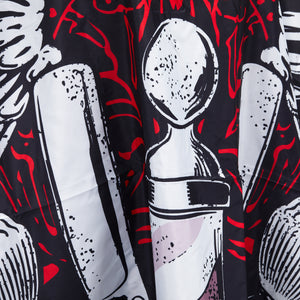 Výrobek je vyroben z černého nepromokavého materiálu, který umožňuje snadné čištění a dostatečně chrání před jakýmkoli postříkáním. Díky své univerzální velikosti a možnosti nastavení díky patentkám u krku poslouží každému klientovi bez ohledu na jeho výšku, čímž zajistí pohodlí během prováděného ošetření.