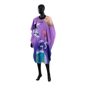 Pláštěnka je vyrobena z nepromokavého materiálu, který se snadno udržuje v čistotě a nepropouští vlhkost, čímž chrání oblečení před promočením. Nastavitelné, pohodlné zapínání umožňuje dokonalé přizpůsobení. Rozměry a mimořádně jednoduché skládání výrazně usnadňují skladování. Veselý potisk s kosmickými prvky navíc dělá z pláštěnky nejen praktický doplněk, ale také zajímavou atrakci, která zpříjemní návštěvu kadeřnictví.
