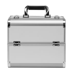 Moderní design s hladkou povrchovou úpravou stěn ve stříbrné barvě s kovovými akcenty dodává na eleganci. Díky rukojeti se snadno přenáší, což je důležité zejména pro mobilní stylisty. Vyrobeno z robustních materiálů odolných proti poškození pro každodenní pohodlí. Pevný uzávěr na patentku s klíčem zajišťuje ochranu obsahu a lehká, odolná konstrukce usnadňuje přenášení kufru.