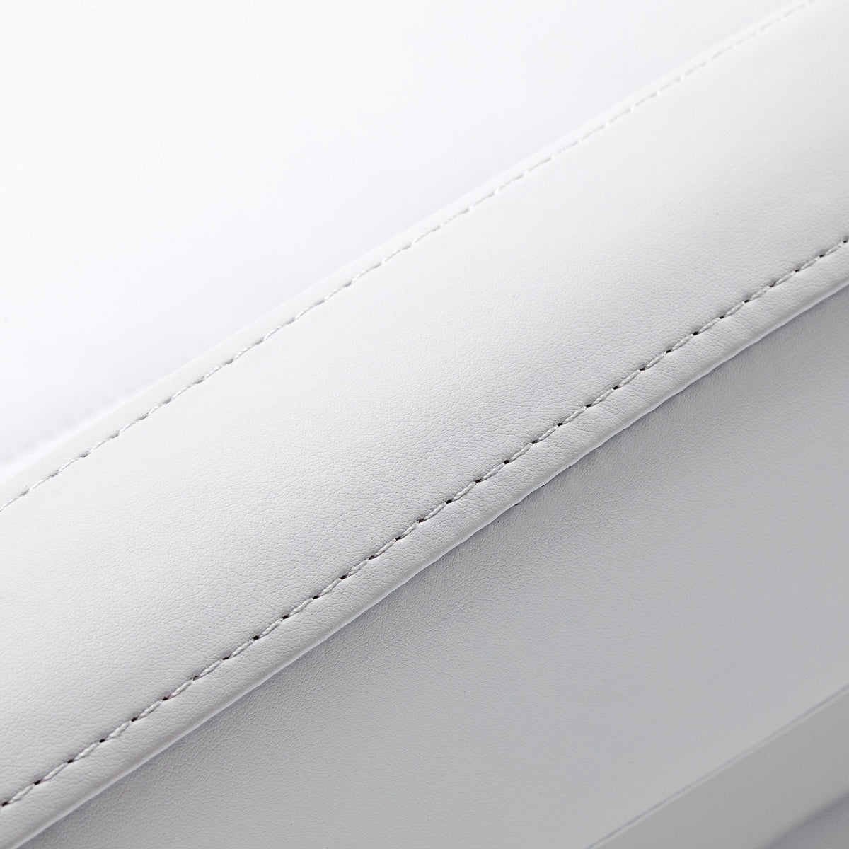 Robustní konstrukce křesla zajišťuje stabilitu a odolnost při každodenním používání. Sedák je vyplněn pěnou vhodně zvolené tvrdosti, která zaručuje pohodlí i při dlouhodobém ošetření. Čalounění z vysoce kvalitní, na dotek příjemné imitace kůže v odstínech bílé barvy dodává celému křeslu profesionální vzhled a zároveň je odolné vůči vlhkosti a snadno se čistí. Odolná základna zaručuje stabilitu, zatímco precizní povrchová úprava podtrhuje moderní charakter židle a zvyšuje ergonomii sedadla.