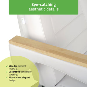 Elegant and modern design: The Leo PRO 4 stands out with its high-quality craftsmanship. Fine details such as wooden armrest accents and decorative upholstery stitching highlight its luxurious, stylish character.