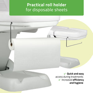 Roll paper holder: The chair features a practical holder for disposable roll paper, increasing efficiency and hygiene during treatments.