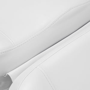 Křeslo je vyplněno tvarovanou pěnou a potaženo na dotek příjemnou syntetickou kůží v odstínech bílé barvy. Díky použitému materiálu se zařízení snadno čistí a je odolné vůči vlhkosti a vybraným dezinfekčním prostředkům. Pevná základna z odolného materiálu v odstínech bílé zajišťuje stabilitu při ošetření. Vhodně tvarované lemy dodávají křeslu stylový vzhled a zajišťují ergonomii sedadla. Díky minimalistickému, jednoduchému designu a klasickým barvám se hodí do každého interiéru.