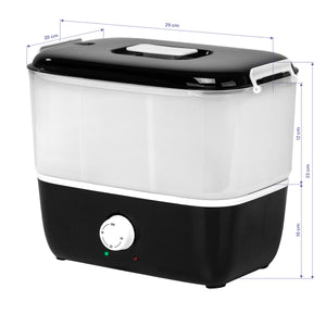 Součástí balení je: nádržka na vodu, nádržka na ručníky, oddělovací prvek, víko, napájecí zdroj, návod.