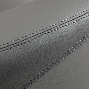 The chair is filled with foam, which is durable and does not deform, ensuring comfortable use for a long time. The upholstery is made of pleasant-to-the-touch imitation leather with a specific structure. Thanks to the use of such material, the equipment is resistant to moisture, durable and easy to clean. The covering in shades of gray and decorative elements in gold hues give it an expression of timeless elegance. Its distinctive classic finish makes it look great in almost any space.