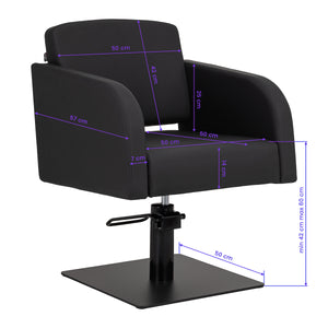 Kadeřnické křeslo Gabbiano Elda kombinuje jednoduchý design s praktickými řešeními. Je vybaveno účinným hydraulickým zvedákem, který umožňuje pohodlné nastavení výšky a usnadňuje práci kadeřníka. Pohodlné sedadlo zajišťuje komfort i při dlouhých procedurách a díky minimalistickému designu je křeslo nejen funkční, ale také elegantním doplňkem salonu.