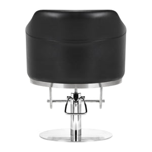 Pevná kulatá základna zajišťuje stabilitu při používání. Díky hladkému povrchu se tento kus snadno udržuje v čistotě. Široký sedák, vyplněný pěnou správné tuhosti, zaručuje vysoký komfort používání a pohodlí i při dlouhých hodinách ošetřování. Područky jsou ve výšce, která umožňuje správnou polohu ramen klienta - zajišťují, že klient nezaboří hlavu do paží ani se nehrbí - což jednoznačně zlepšuje ošetření, včetně stříhání vlasů. To usnadňuje přesné poskytování služeb.