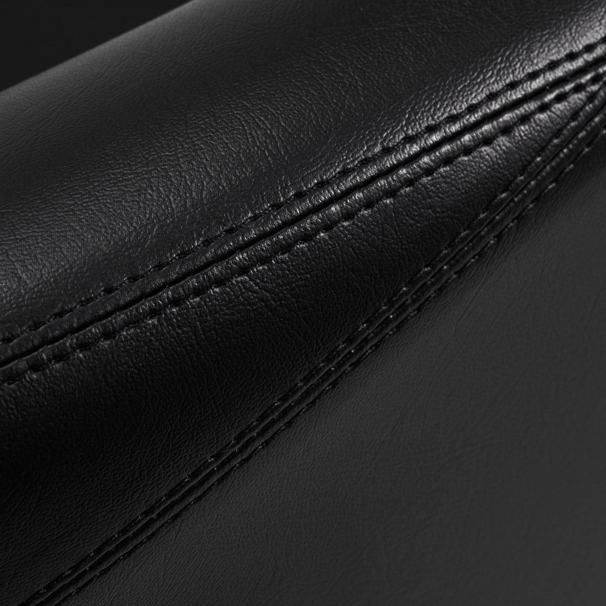 Křeslo je vyplněno pěnou, která je odolná a nedeformuje se, což zajišťuje pohodlné používání po dlouhou dobu. Čalounění je vyrobeno z na dotek příjemné imitace kůže se specifickou strukturou. Díky použití takového materiálu je zařízení odolné vůči vlhkosti, trvanlivé a snadno se čistí. Potah v odstínech černé a ozdobné prvky ve stříbrné barvě mu dodávají výraz nadčasové elegance. Díky svému výraznému klasickému provedení bude vypadat skvěle téměř v každém prostoru.