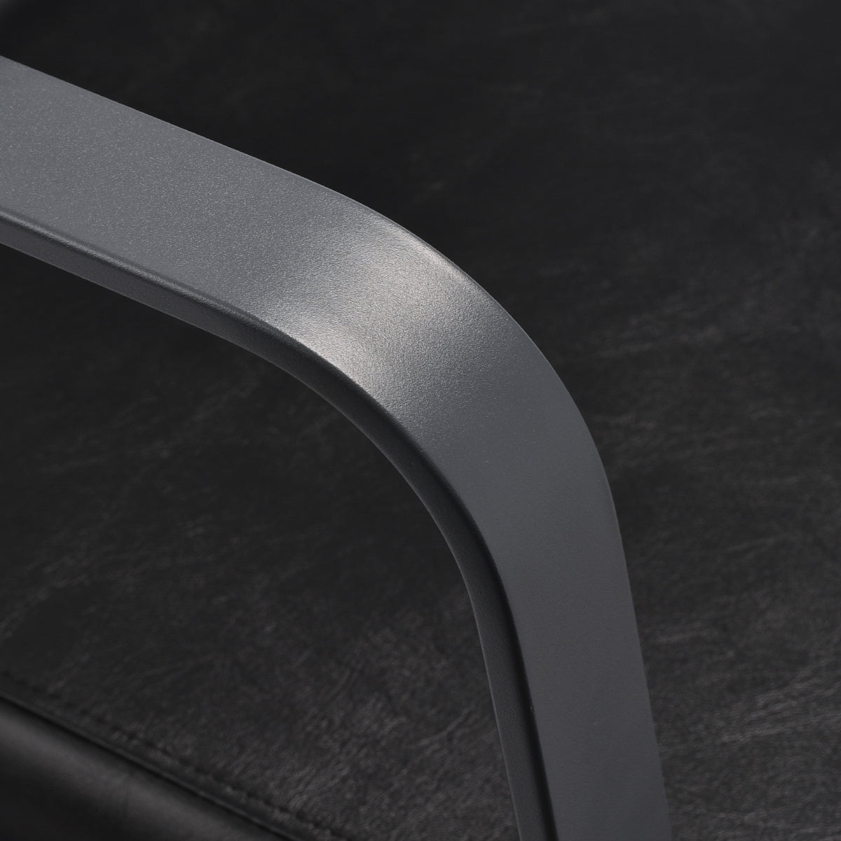 Polstrování z odolné pěny odolné proti deformacím a čalounění z na dotek příjemné syntetické kůže zajišťují odolnost nábytku a jeho pohodlné používání po dlouhou dobu. Díky nim je také odolný proti vlhkosti, trvanlivý a snadno se čistí. Potah v černých tónech mu dodává jedinečný charakter. Zařízení se vyznačuje moderním designem, díky němuž se křeslo skvěle vyjímá v mnoha profesionálních salonech.