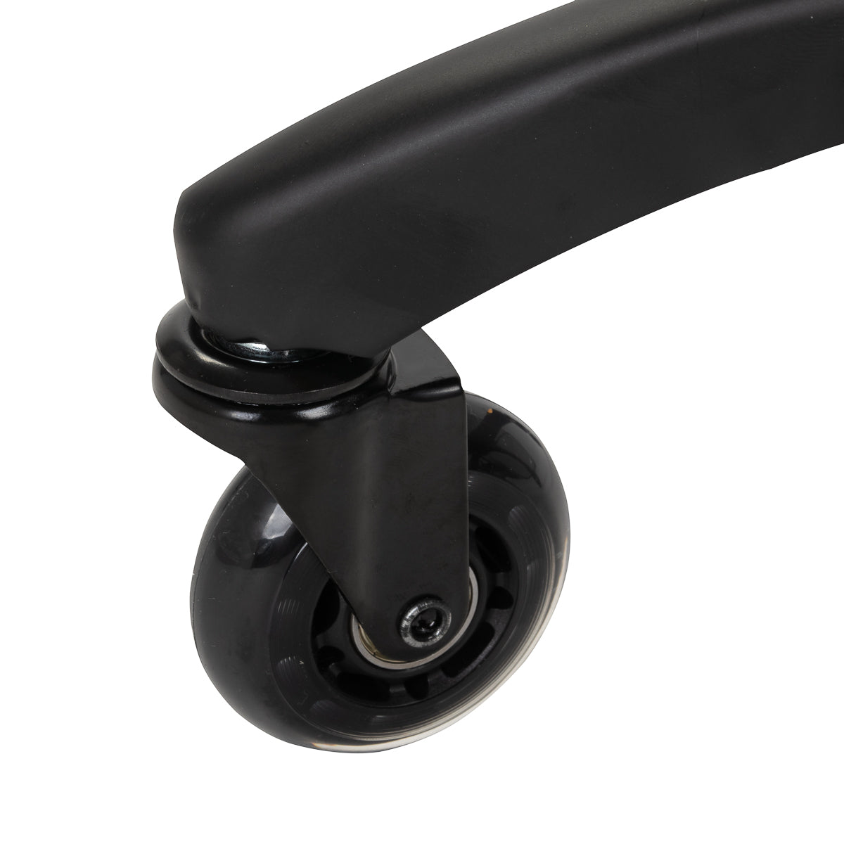 Nastavení výšky sedadla v rozmezí 56 až 76 cm umožňuje přizpůsobit polohu individuálním potřebám profesionála při provádění služeb. Zádová opěrka podpírá páteř a zajišťuje pohodlí i při dlouhodobé práci. Plně otočný mechanismus zvyšuje volnost pohybu, což vede k většímu pohodlí a efektivitě. Mobilitu zajišťují kolečka Roll Speed s železným jádrem a polyuretanovým (PU) potahem, která kombinují plynulý pohyb s výjimečnou odolností proti opotřebení. Použití ložisek ABEC-7 usnadňuje pohyb stoličky a výrazně usnadňuje manévrování.