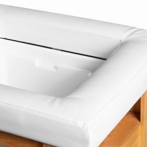 Lůžko Head Spa Bali je harmonickou kombinací funkčnosti a moderního designu. Jeho stabilní konstrukci zpevňuje pevný rám zakončený estetickými dřevěnými prvky, které dodávají interiéru teplo a eleganci. Robustní konstrukce zaručuje stabilitu a odolnost pro dlouhodobé používání. Ergonomicky profilovaný povrch lehátka je potažen měkkou syntetickou kůží v elegantních bílých odstínech, která zajišťuje maximální pohodlí při ošetření a zároveň umožňuje snadnou údržbu. Praktická skříňka umístěná pod lehátkem umožňuje pohodlné uložení kosmetiky a příslušenství, díky čemuž jsou všechny potřebné produkty vždy na dosah. Kombinace přírodního dřeva, měkké syntetické kůže a ergonomického designu činí z lehátka Head Spa Bali stylový a funkční kus nábytku pro kadeřnické salony, SPA a wellness centra. Je navržen tak, aby kombinoval komfort používání s nadčasovou estetikou.