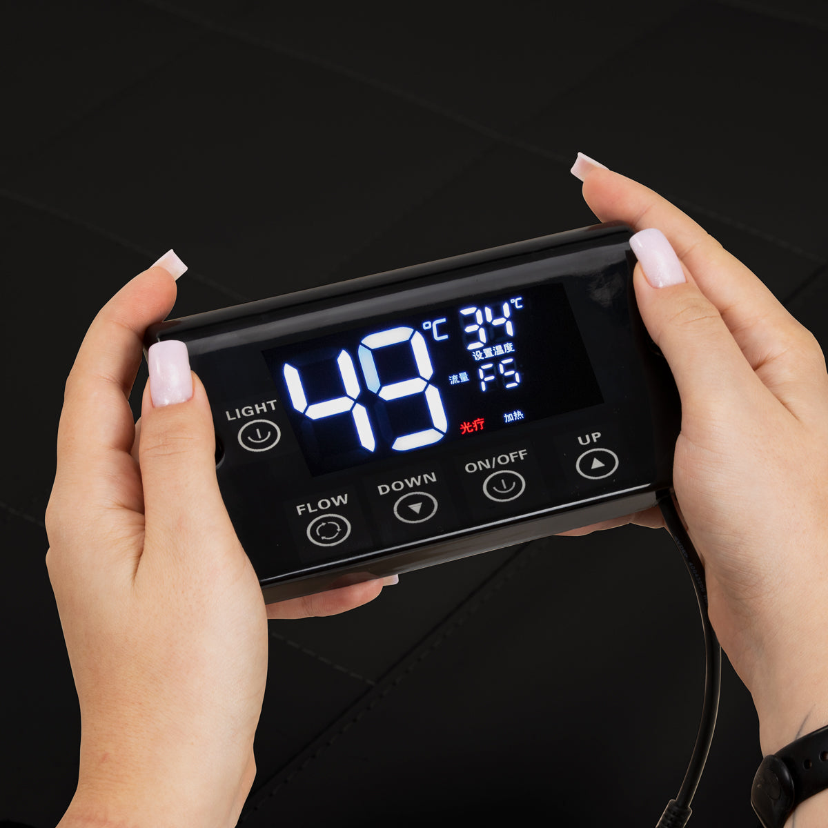 The intuitive touch panel allows for full control over treatment parameters and ease of use. It allows you to adjust the operating time and water temperature, as well as monitor their current values on a clear, easy-to-read display. Additionally, the panel allows you to activate the light therapy function, which illuminates the bowl, creating an atmosphere of relaxation and luxury. The set also includes a remote control, which allows you to conveniently control the steam therapy device from a distance.