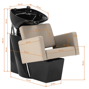 The Gabbiano Vitoria hairdressing wash unit combines modern aesthetics and functionality, perfectly matching the decor of modern salons. The integrated design ensures stability, while the ergonomic shape of the chair guarantees comfort for the customer and the hairdresser. The profiled seat provides comfort during longer treatments, and the minimalist form fits perfectly into modern interior designs.