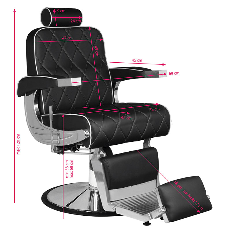 V návaznosti na tento trend jsme do naší nabídky zařadili nový produkt - holičské křeslo. Jedná se o moderní, dokonale zpracovaný kus nábytku, který poskytuje klientovi salonu maximální pohodlí při ošetření. Kromě možnosti nastavení polohy nahoru-dolů má křeslo polohovatelné opěradlo a nastavitelnou opěrku nohou. I přes jeho malé rozměry je možné klienta umístit do pohodlné pololeže. Pohodlný sedák je potažen kvalitní ekokůží. Široká chromovaná základna zaručuje stabilitu nábytku při používání. Další výhodou je možnost snadného nastavení opěrky hlavy.