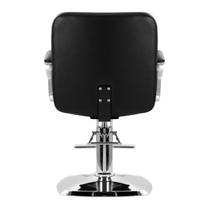 Pevná základna zajišťuje stabilitu při používání a její zrcadlově leštěný povrch se snadno udržuje v čistotě. Pohodlné sedadlo je vyplněno odolnou pěnou, která zajišťuje vysokou úroveň pohodlí i během dlouhých hodin používání. Částečně čalouněné područky jsou vizuálně zajímavým prvkem a díky vhodnému profilování umožňují správnou polohu ramen klienta. Díky tomu klient nezakopává hlavu do ramen a nehrbí se - což výrazně usnadňuje provádění přesných ošetření včetně stříhání. Díky plně otočnému mechanismu křesla je práce kadeřníka efektivnější a pohodlnější.
