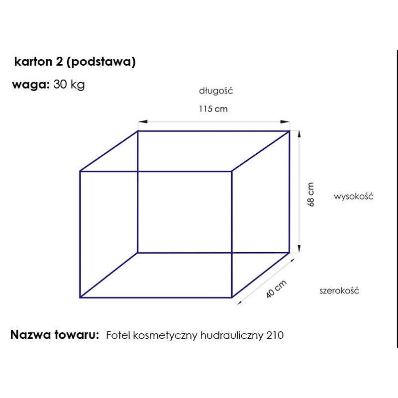 s otvorem v opěrce hlavy, ideální pro kosmetiku, vizáž. Má odnímatelné područky a kryt v opěrce hlavy. Potah křesla je snadno omyvatelný, vyrobený z ekokůže, splňující přísné požadavky EU, estetické, poniklované kovové prvky. Pod křeslem se nachází držák na jednorázové prostěradlo, ubrousky nebo ručník.