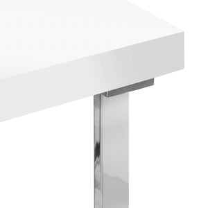 The modern form of the desk, combining a white top with silver, geometric legs, adds lightness and elegance to the interior. Thoughtful details, such as integrated cable slots and accessory mounting, help keep the workstation tidy. Thanks to its compact yet stylish form, the desk will work perfectly in both small spaces and larger, modern interiors.