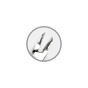 Rovné, špičaté (boční/velmi úzké) kleště jsou vyrobeny z nejkvalitnější nerezové oceli. Jedná se o robustní a přesný nástroj s ostrou řeznou plochou. Díky speciální konstrukci čepele jsou kleště vynikající pro zkracování a stříhání zarůstajících nehtů. Model je vybaven bezpečnostním mechanismem s dvojitou pružinou. Nástroj lze sterilizovat v autoklávu. Kleště se doporučují zejména pro použití v kosmetických a podiatrických ordinacích. Nástroj se prodává v ozdobné plechovce, která kleště chrání při přepravě.